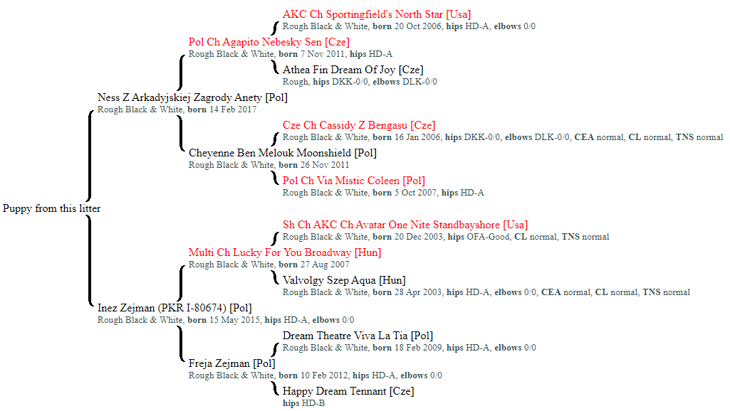 Dopiero około 1,5 roku zaczęła się wyciszać w pracy (trenuje obedience i rekreacyjnie pasienie i agility). Bardzo chętna do wykonywania zadań, jest dobra w zasadzie we wszystkim, czego spróbuje.